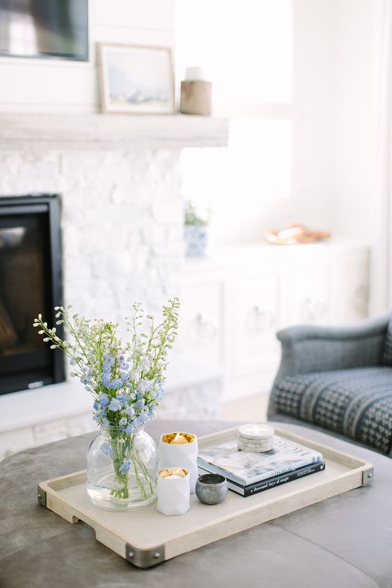 Ένα βάζο, επιβάλλεται! Σας προτείνουμε να το τοποθετήσετε στον δίσκο, με φρέσκα λουλούδια. Τα λουλούδια προσφέρουν στον χώρο ζωντάνια και άρωμα. Ειδικά τώρα που χειμωνιάζει, είναι η ιδανική επιλογή.